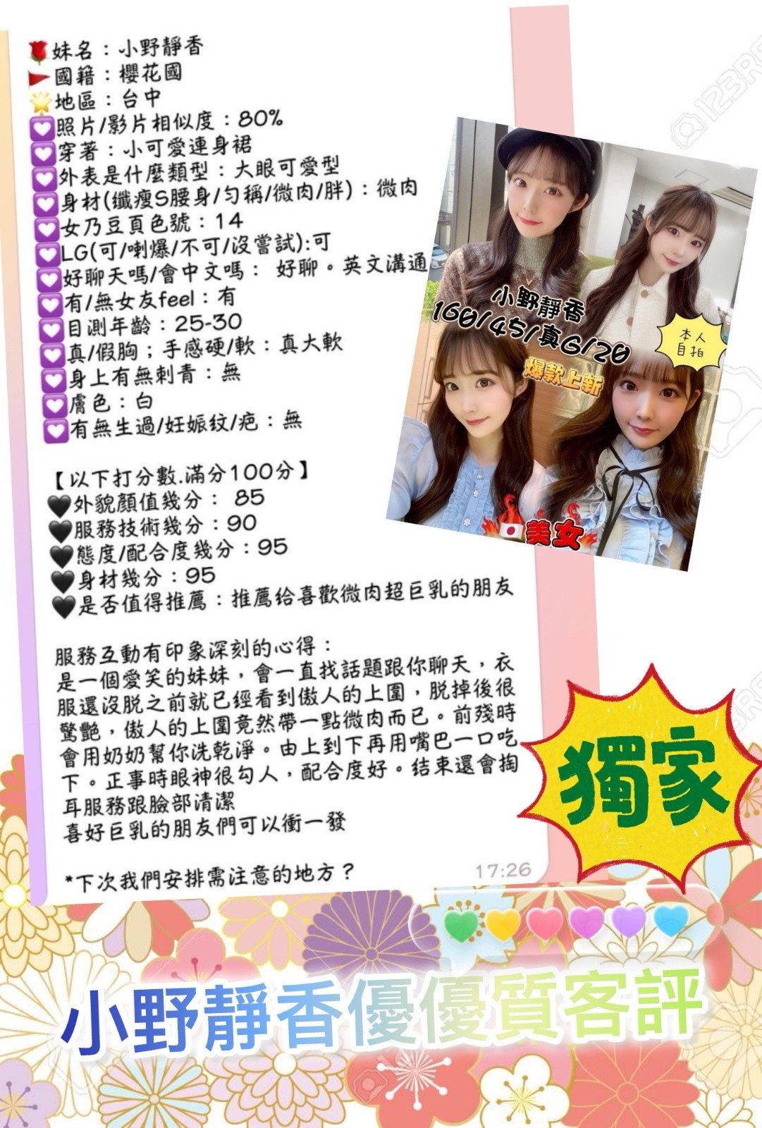 超雪白肉體,粉色雙頰甜美女孩兒    Review by 傅**
