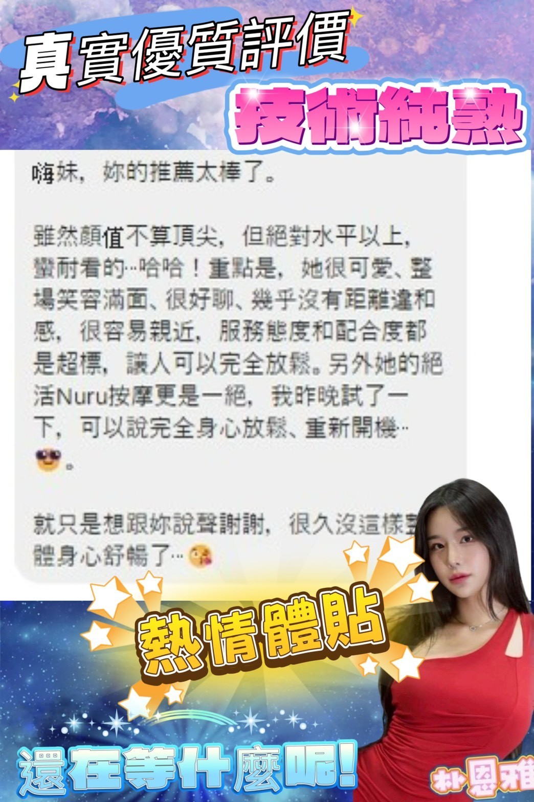 天使般的傲人身材,性感帶點性感的笑容    Review by 鐘**