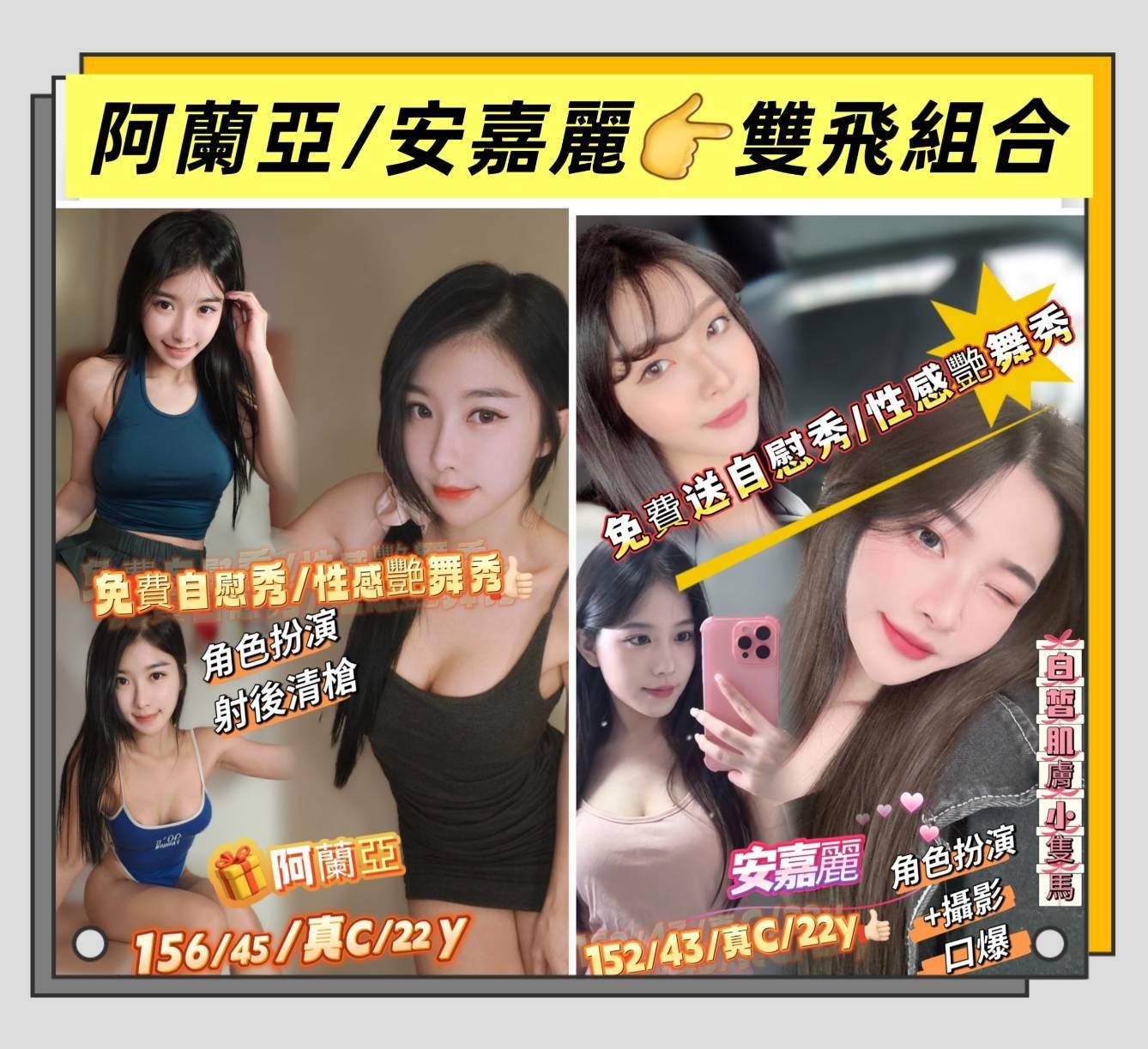 甜蜜共浴/殘廢澡/無套吹/戴套做/舌吻(視衛生)/品鮑/69/按摩/奶炮/胸推/吞蛋舔睪丸/挑逗/調情/舒麻舌功/