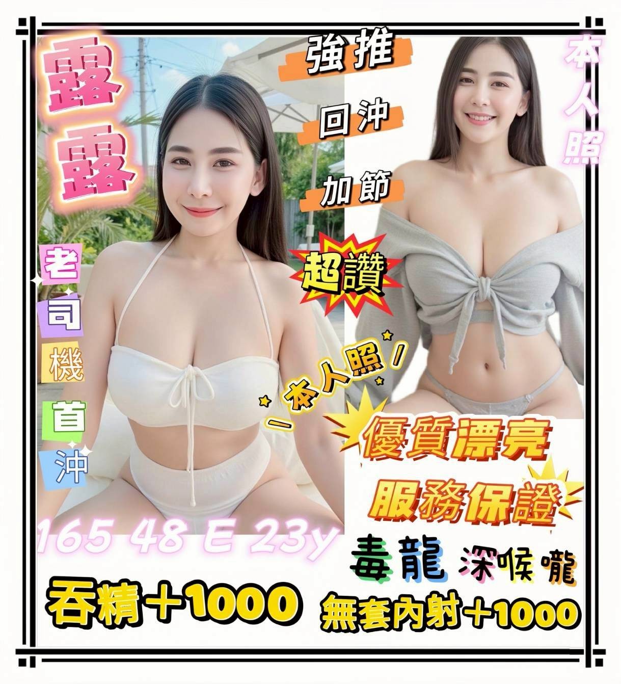 無套吹/戴套做/小親親/熱情舌吻/69/品鮑/吞蛋/舔蛋/奶炮/胸推/屁推/共浴/按摩