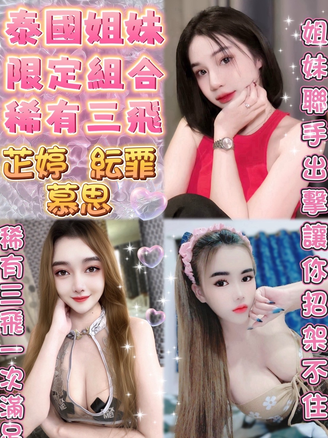 無套吹 共浴 品鮑 小親親 69 奶炮 胸推 屁推 自慰秀 絲襪(客自備 情趣用品(客自備 雙飛